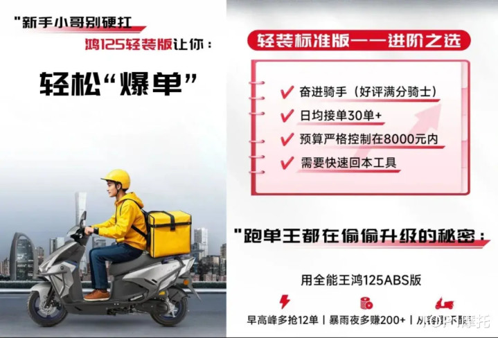 而官方为鸿125精准的锚定了通勤的定位,还很适合当做外卖小哥的送餐利器,6L油箱搭配百公里≤2.5L的实测油耗,续航能力进一步满足高强度跑单需求。轻装标准版更是以8000元内预算成为奋进骑手的回本利器;ABS版虽略贵,但则凭借ABS+TCS双安全配置、怠速启停与脉冲点火功能,让早高峰通勤能多抢单、暴雨夜骑行更从容,堪称“卷王之王”。